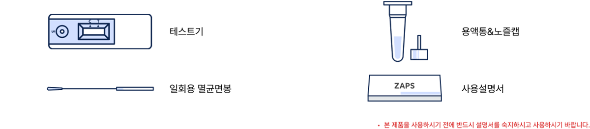 | 구성품 | 테스트기, 용액통, 노즐캡, 면봉, 사용설명서 |